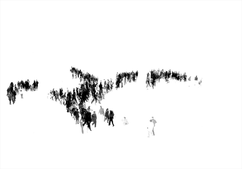 COMPOSINGS (2010/--) est un projet protéiforme d’exploration de l’espace urbain à travers la présence et la mobilité corporelles dans un temps donné. Amorcé en 2010, il est toujours conduit par le même protocole artistique via le médium photographique. Celui-ci associe procédé d’extraction de corps par réfraction de la lumière, quand le soleil est à son zénith et sur des échelles de temps définies par la nature des flux de corps, au procédé d’accumulation de corps par la pluralité des prises de vue jusqu’à la superposition des images. En suivant ce protocole, je compose avec de la coprésence pour (re)construire, à l’image, des espaces, dans un rapport d’inscription/révélation, entendu aussi comme une manipulation de temps. COMPOSINGS est mené dans différentes villes d’Europe et prend, au fil du temps, des formes différentes qui proposent aux spectateurs des modes différents de lecture de l’espace. L’enjeu de ce projet se situe sur un plan politique et social, interrogeant l’agencement contemporain de nos espaces que détermine la recherche d’une fluidité de circulation, résonnant, de par mon point de vue photographique en surélévation, avec celui des dispositifs de vidéosurveillance chargés de capturer le réel par l’image, créant et exploitant des données numériques dans leur fonction de signes. Sur un plan artistique et sensible, ce projet s’ouvre sur la question de nouveaux modes de perception et de compréhension de l’espace dans sa représentation.