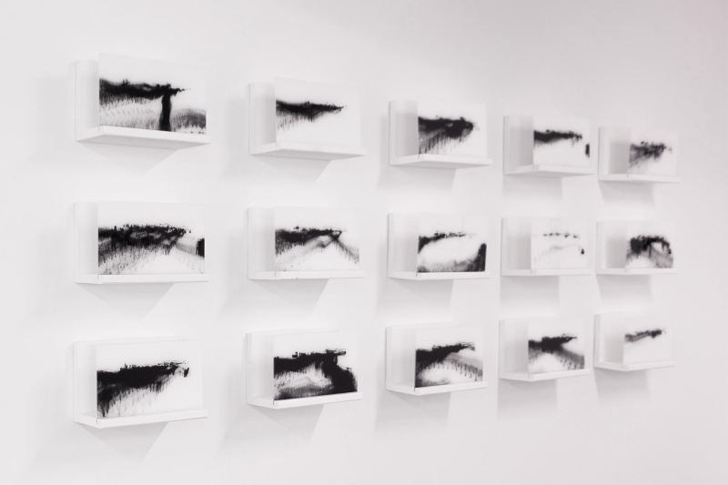 15 photographies numériques, noir&blanc, 18x32cm. Tirage direct sous plexiglass diasec 3mm. 15 supports bois blanc. Edition 1 + 1EA.