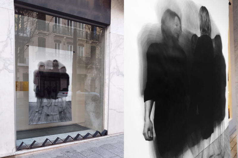 1 photographie numérique, noir&blanc, 135x200cm. Tirage jet d'encre pigmentaire sur bâche opaque. Edition 1. Produit avec l'Aide à la Création de la Ville de Saint-Etienne.