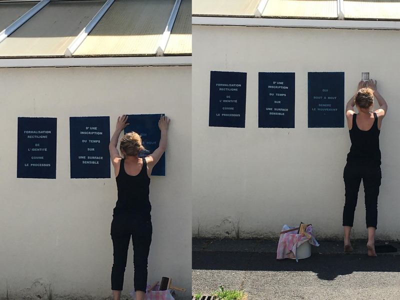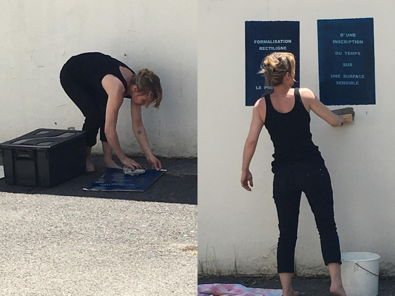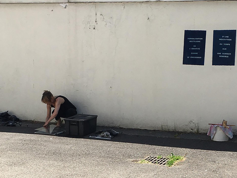 La performance VALSE à 3 temps propose une mise en résonance de l'Identité et du Photographique d'un point de vue processuel. Elle se compose de trois temps qui suivent un même protocole : Exposition - Délimitation/Construction - Mémorisation - Arrêt/Révélation - Connexion. Elle fait appel à deux procédés photochimiques dont la temporalité se retrouve définie par l'action du corps.