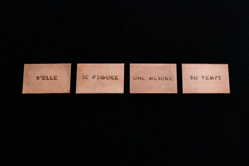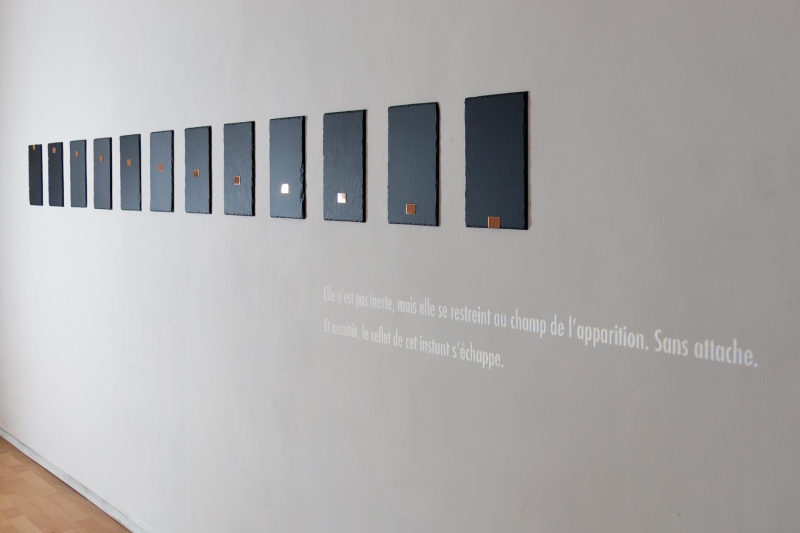12 ardoises, 20x30cm + 12 plaques de cuivre 2,4x3,6cm + texte. Edition 1.