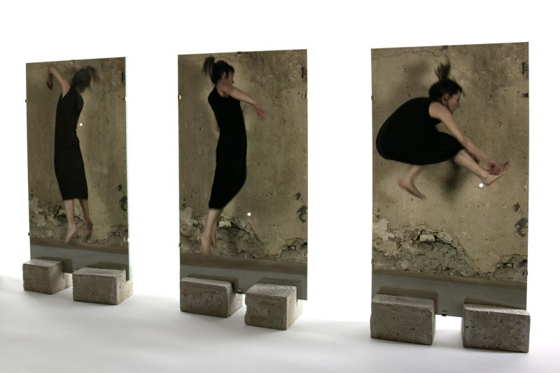 10 photographies numériques, couleur, 25x45cm. Tirage jet d'encre sur film backlit translucide percé. Sous verre 3mm percé. Socles en béton, tailles diverses (env. 10x8x6cm). Edition 1.