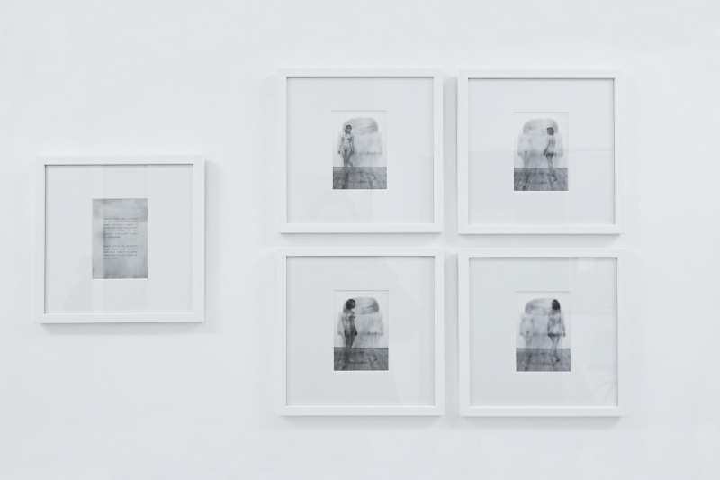 5 photographies numériques, noir&blanc, 9x13cm. Tirage jet d'encre pigmentaire sur platine fibre infinity canson 310g. Sous verre 27x27cm + texte gravé sur plaque de métal. Edition 1.