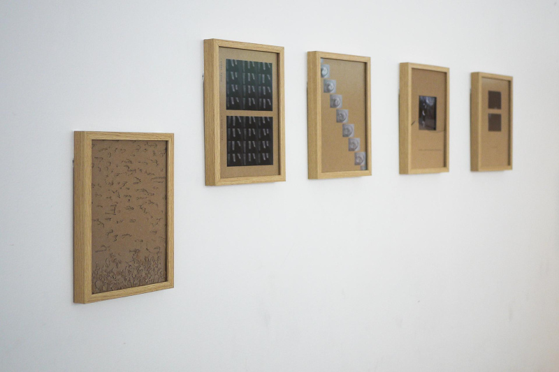18 compositions photographiques et textuelles, 21x29,7cm. Sous verre anti-reflets. Techniques mixtes. Edition 1.