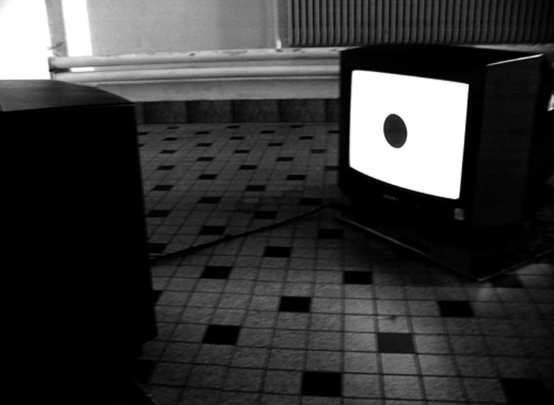 2 digital videos, black&white, mono sound, loop. 2 black televisions on the floor. Edition 1 + 1EA.