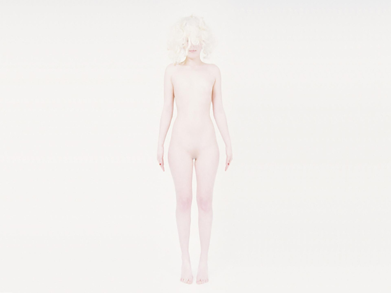 NONAME shows a naked body whose flesh has been purified, digitally homogenized. In a slow, continuous and repetitive movement, this body appears and then fades away ; only a few gendered external attributes remain visible. This new corporeal appearance and the temporality and movement of the image allude to the evanescence of corporeal identity.