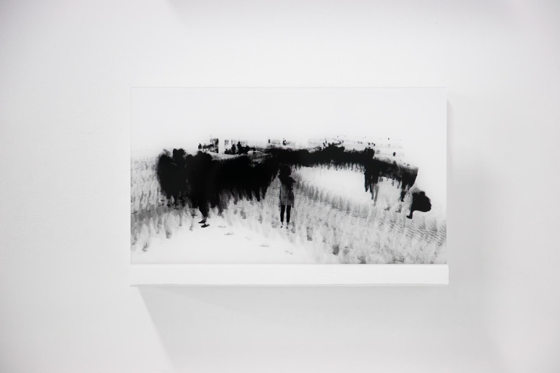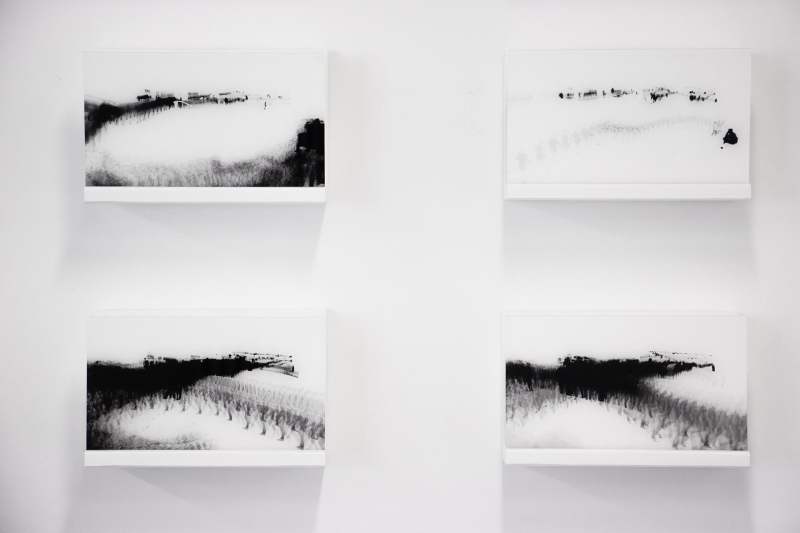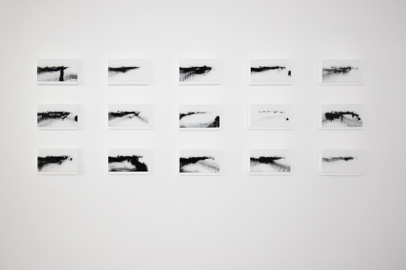 15 digital photographs, black&white, 18x32cm. Acrylic print on transparent acrylic glass diasec. Mounted on white wooden structure. Edition 1 + 1EA.